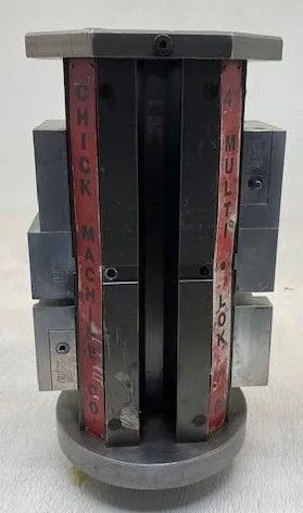CHICK MODEL ML4B08 MULTI-LOK 4-sided tombstone fixture for CNC, used but in good form. Includes 4 vises. Dimensions: 17.5" tall, 9" wide. Ideal for maximizing workpiece efficiency.