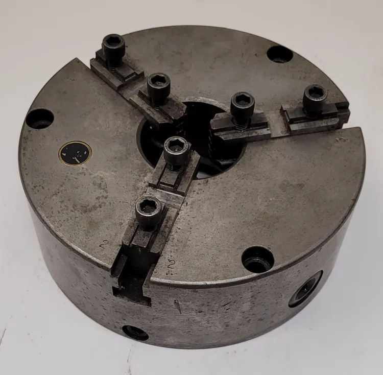 Bison 8" 3 Jaw Adjustable Chuck available now. This used lathe chuck features an 8" overall diameter, 3 jaws, and a 2-1/2" center hole ID. Ideal for tooling and accessory needs. Secure a reliable BISON chuck today.