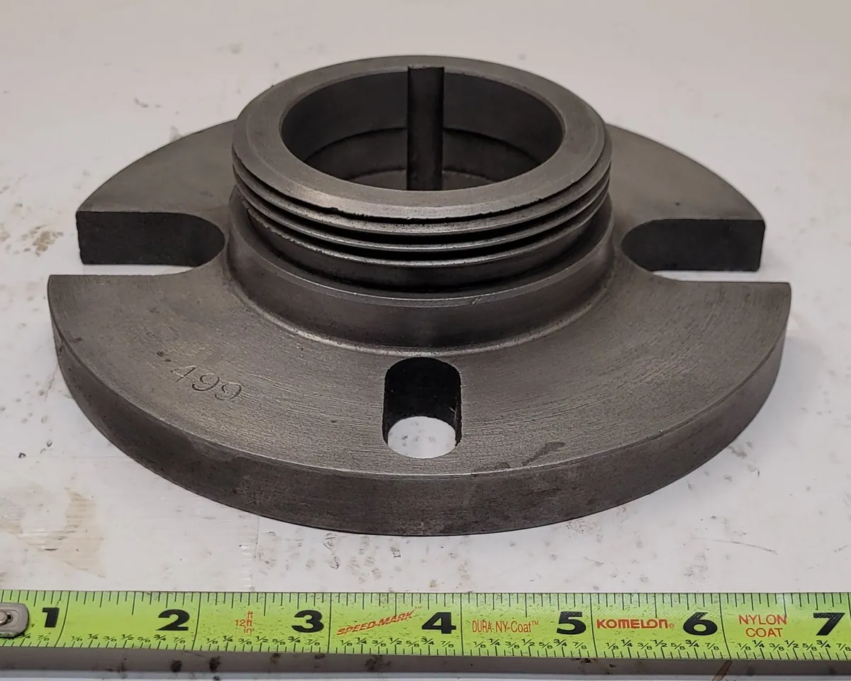 Optimize your machining with this used 7.5" Face Plate featuring an L-0 mount. This robust tooling accessory has a 7.5” diameter, 3.75” center hole OD, and dual center hole IDs, perfect for diverse applications. Act now!