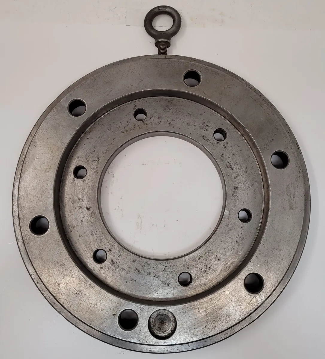 YUASA 16" Heavy Duty Back Plate - A robust used tooling accessory with a 16" diameter and a 7" thru hole. Ideal for those in need of high-performance machinery components.