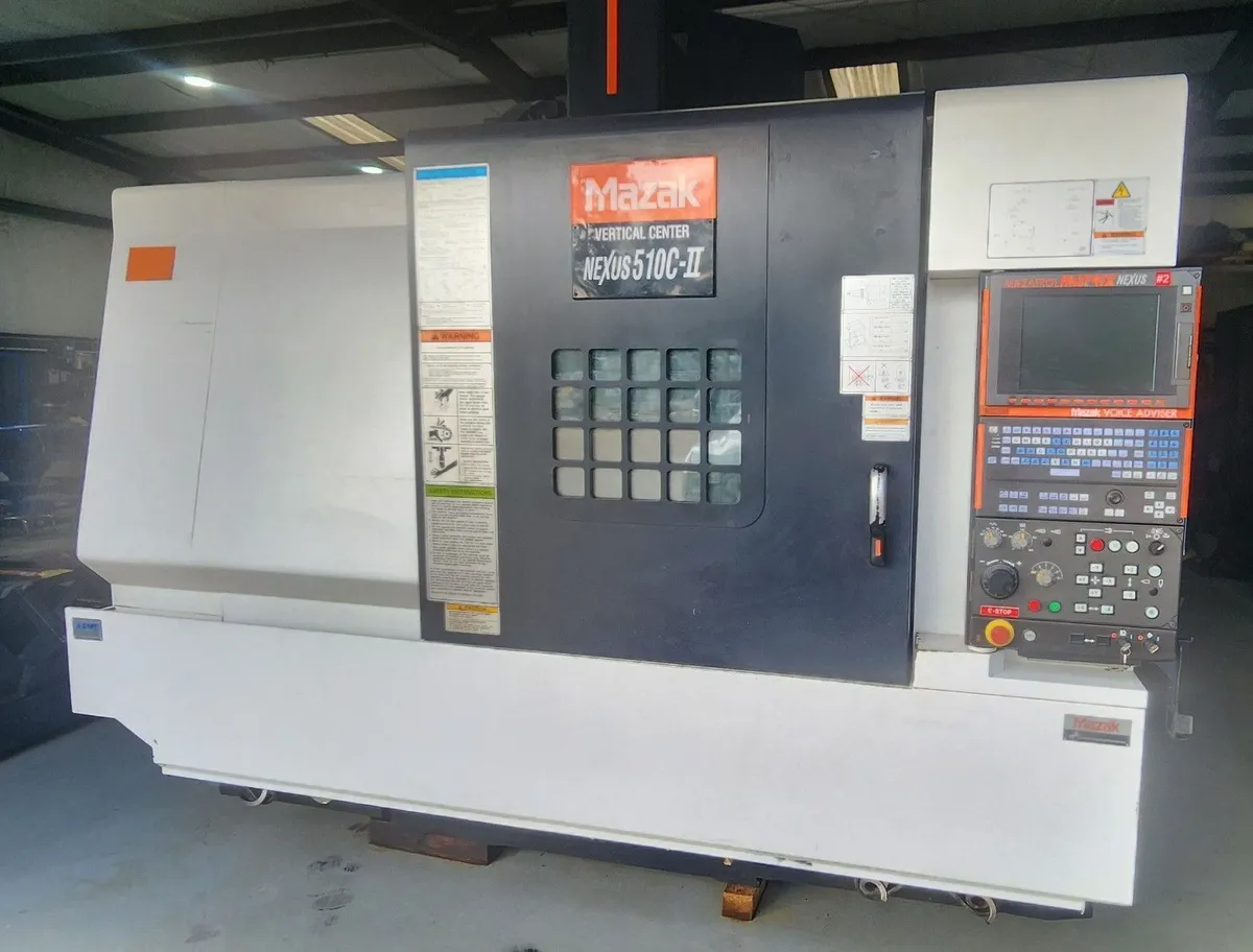 2013 Mazak Nexus 510C-II CNC VMC, 4th Axis ready with low hours. Key features: 41.3" X, 20" Y, 20" Z with 30 ATC, 25 HP motor, Brand New 12,000 RPM spindle installed, and CAT #40 taper. Equipped with Mazatrol Matrix CNC control and Jorgensen Chip Conveyor.
