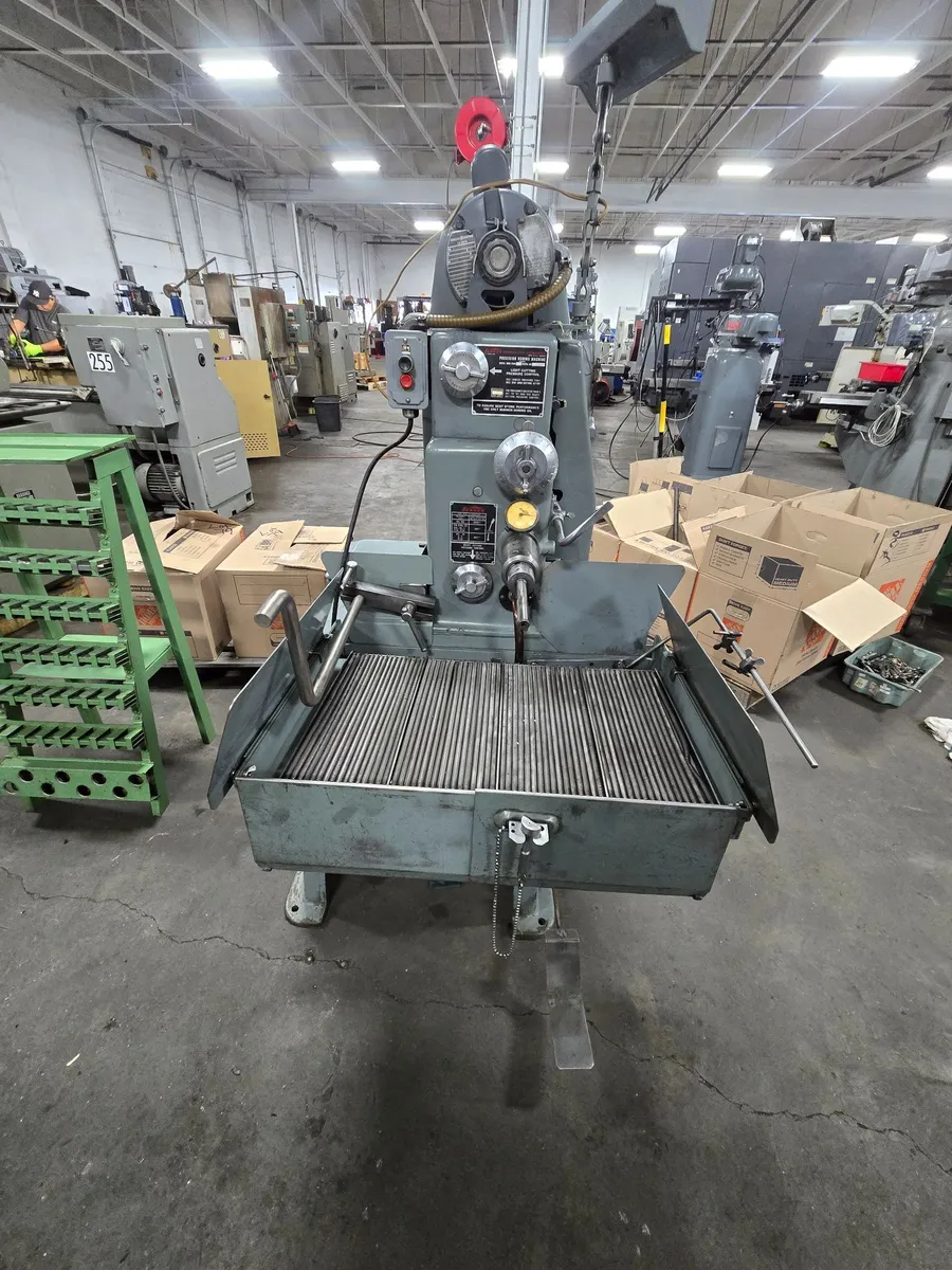 Sunnen MBB-1600 Horizontal Hone, 110V, used. Precision honing from .060" to 6.5" diameter, 12 speeds (200-1600 RPM), for work lengths 1/8" to 16". Includes tooling rack, extra stones, and single-phase operation. Reliable for your honing needs.