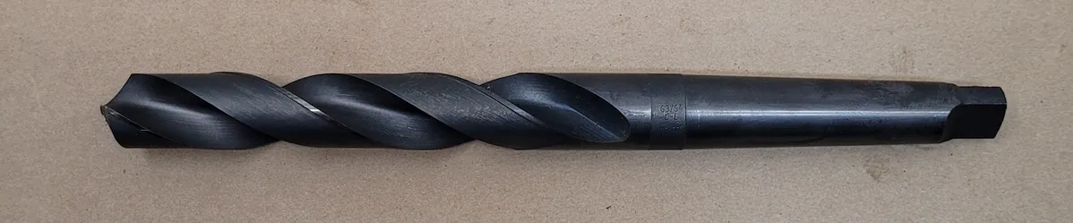Cleveland 63/64" HSS 3MT Taper Shank Drill Bit in used condition. Features include 2 flutes measuring 6-1/2” long, overall length of 11-1/2". Ideal for tooling and drilling needs.