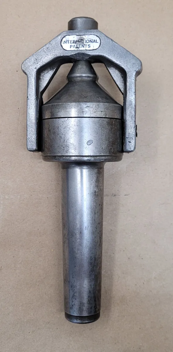 International Patents 4MT Live Center, used. Ideal for precision tooling and accessories, featuring an 8in overall length and size 4 Morse Taper shank. Suitable for various machining applications.