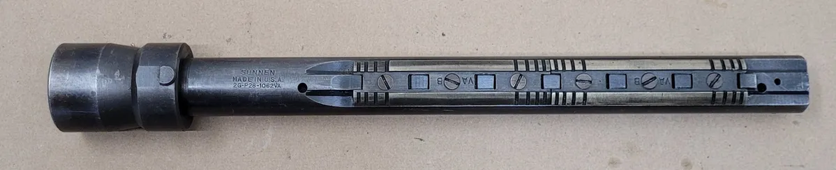 SUNNEN 2G P28 1062 VA honing mandrel, used, in good condition. Features a 12.5" OAL with a honing range of 1.052" to 1.125". Includes P28 series stones and a durable 2-stone mandrel. Ideal for precision tooling tasks.