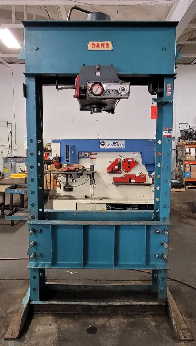 The Dake 150 Ton Air Operated H-Frame Press (Model 6-850 / #906850) is a heavy-duty industrial press designed for high-capacity fabrication work.