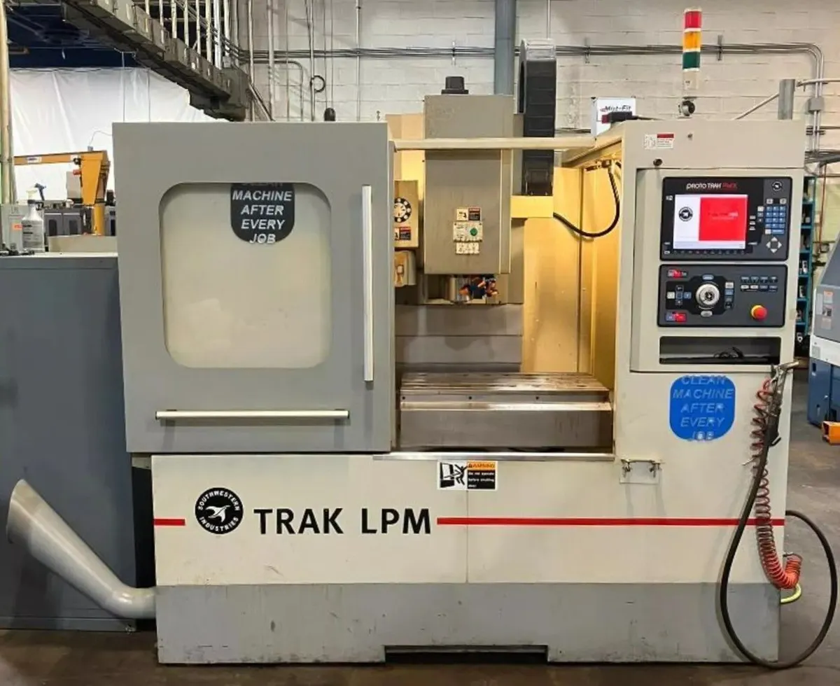 The 2012 Southwestern Industries TRAK LPM is a 3-axis vertical CNC machining center with a ProtoTrak PMX control, designed for quick changeovers.